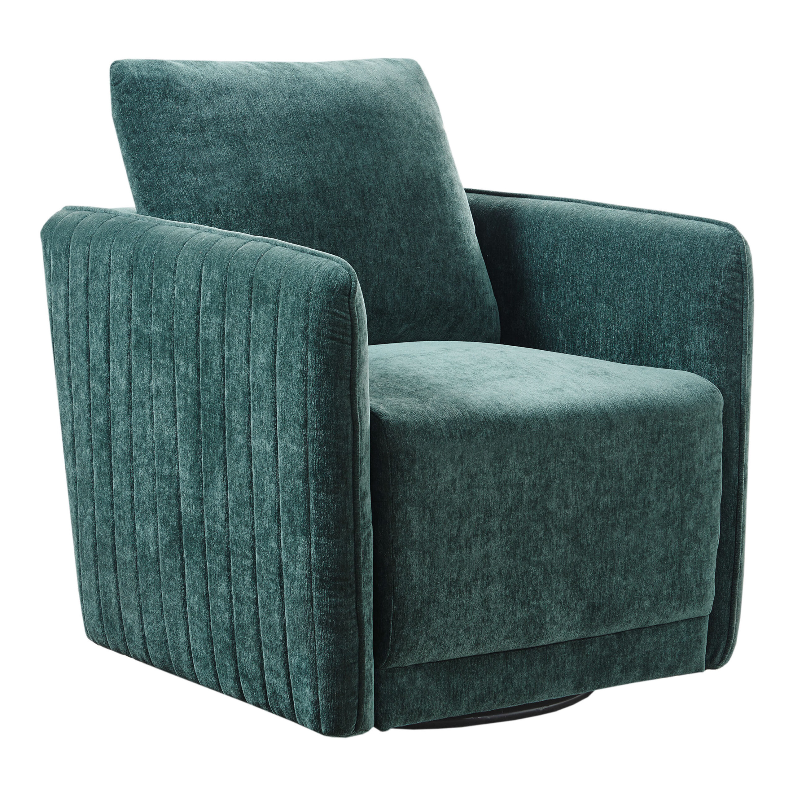 Bennet Green Basketweave Track Arm Upholstered Swivel Chair
