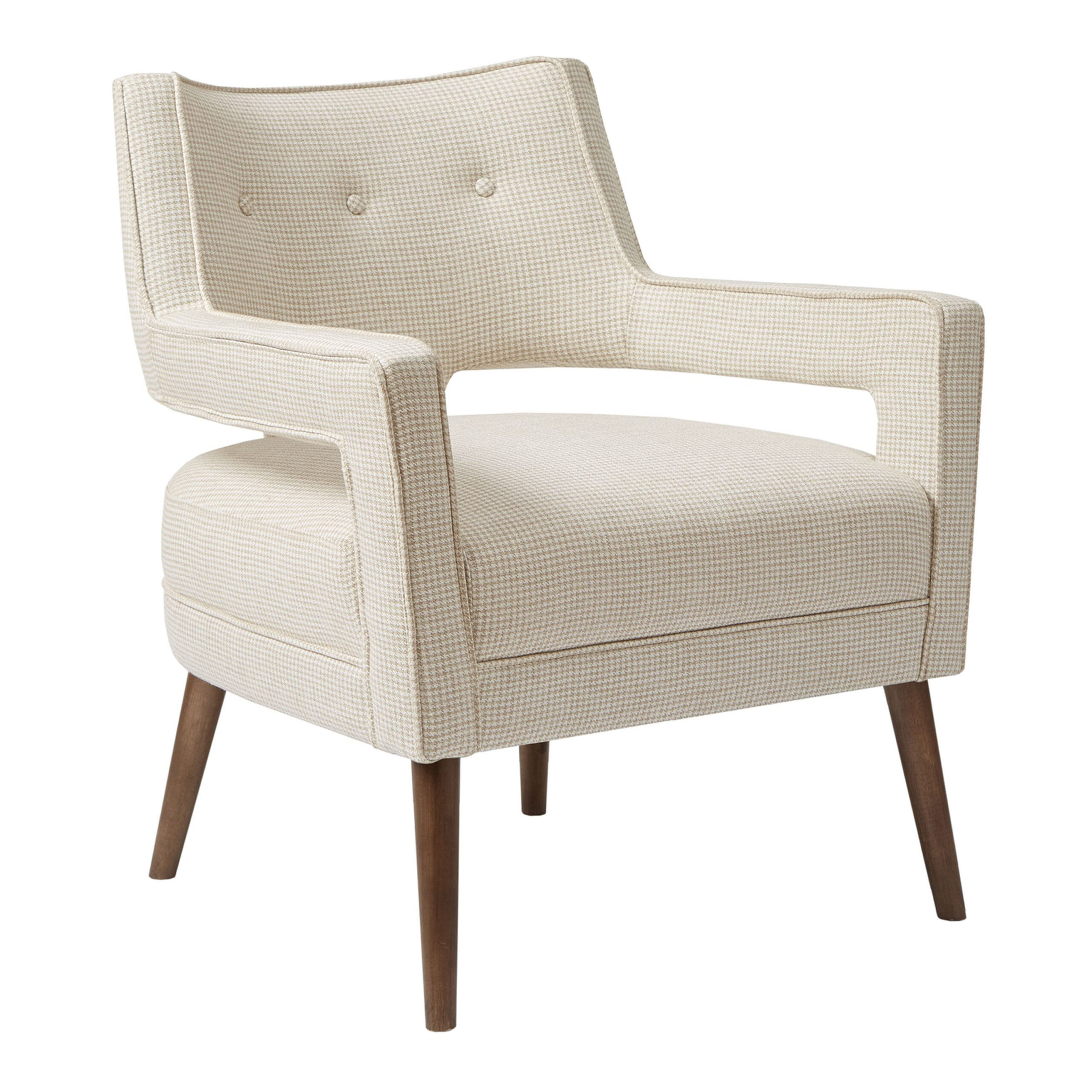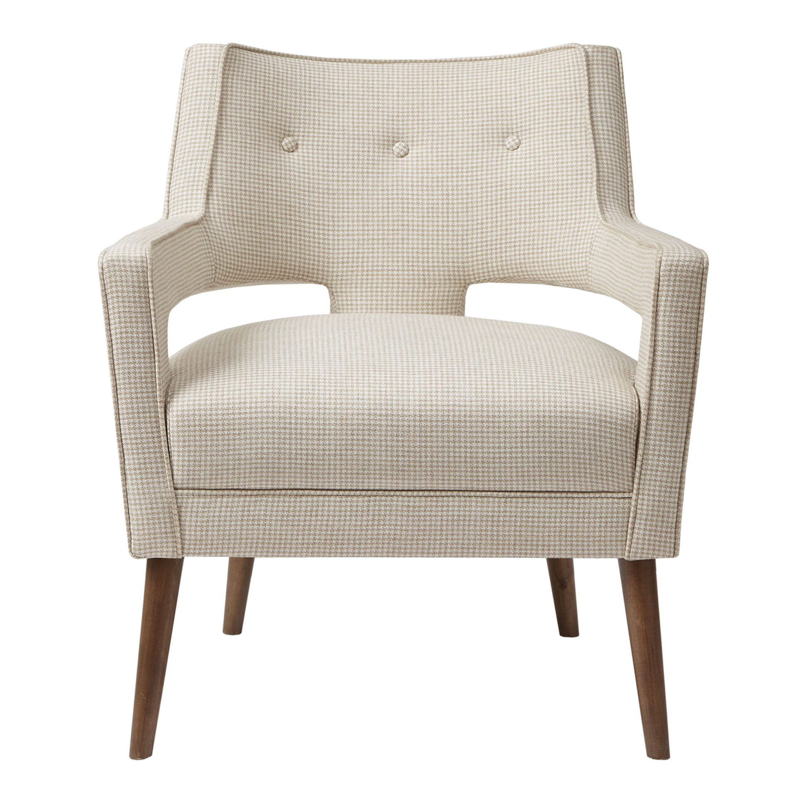 - Made of hardwood, composite wood, birch wood legs with pecan finish and polyester-acrylic upholstery