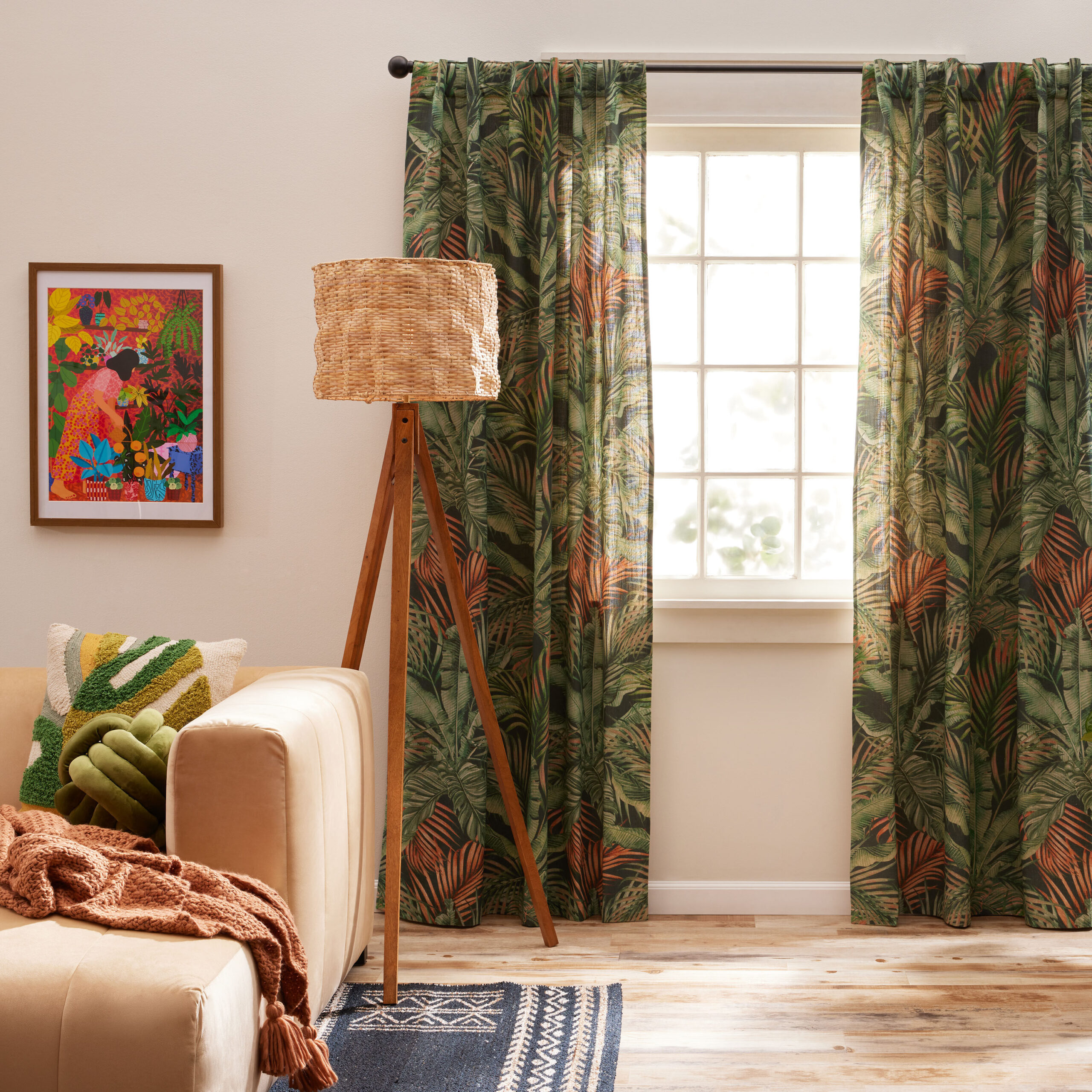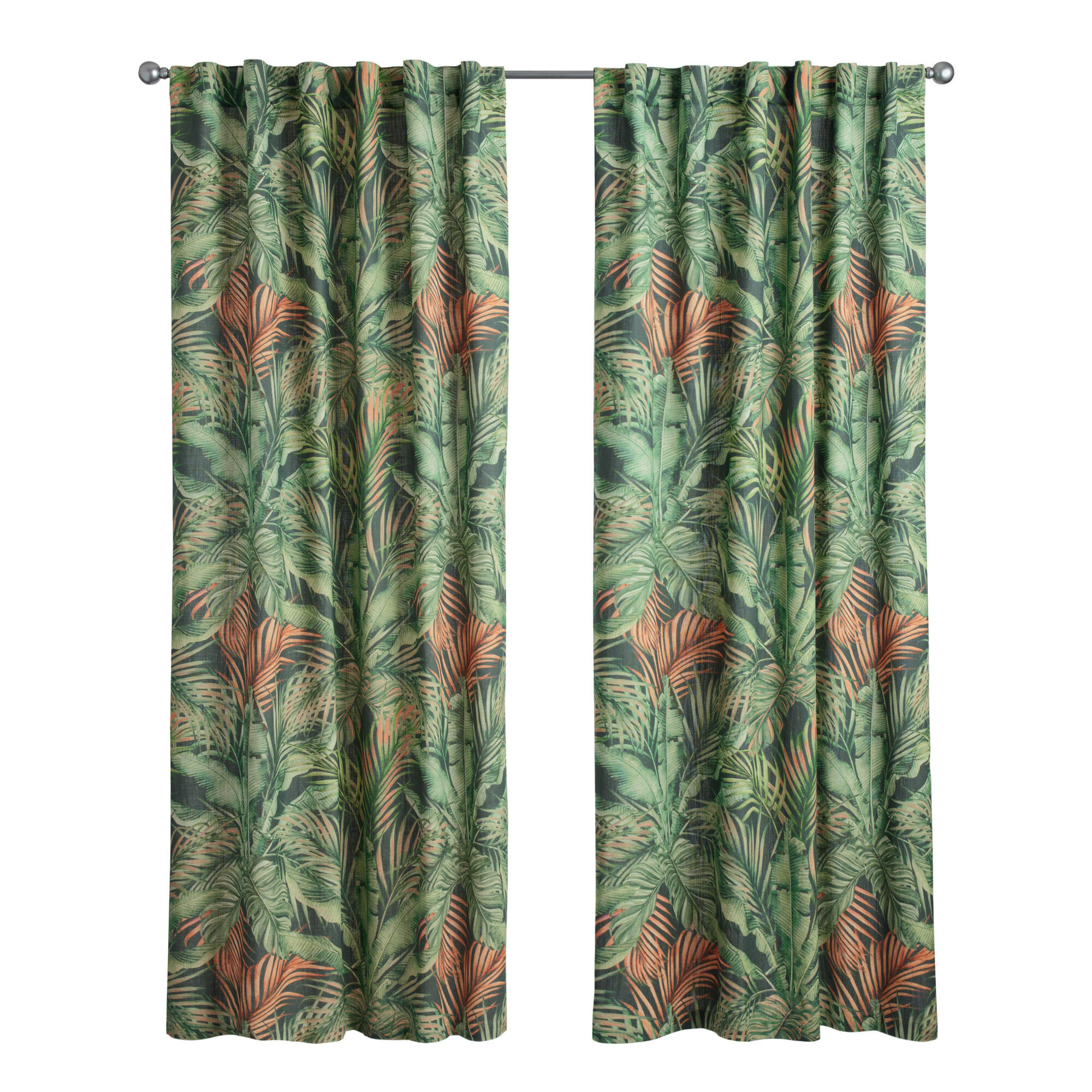 Green Multicolor Tropics Sleeve Top Curtain Set Of 2