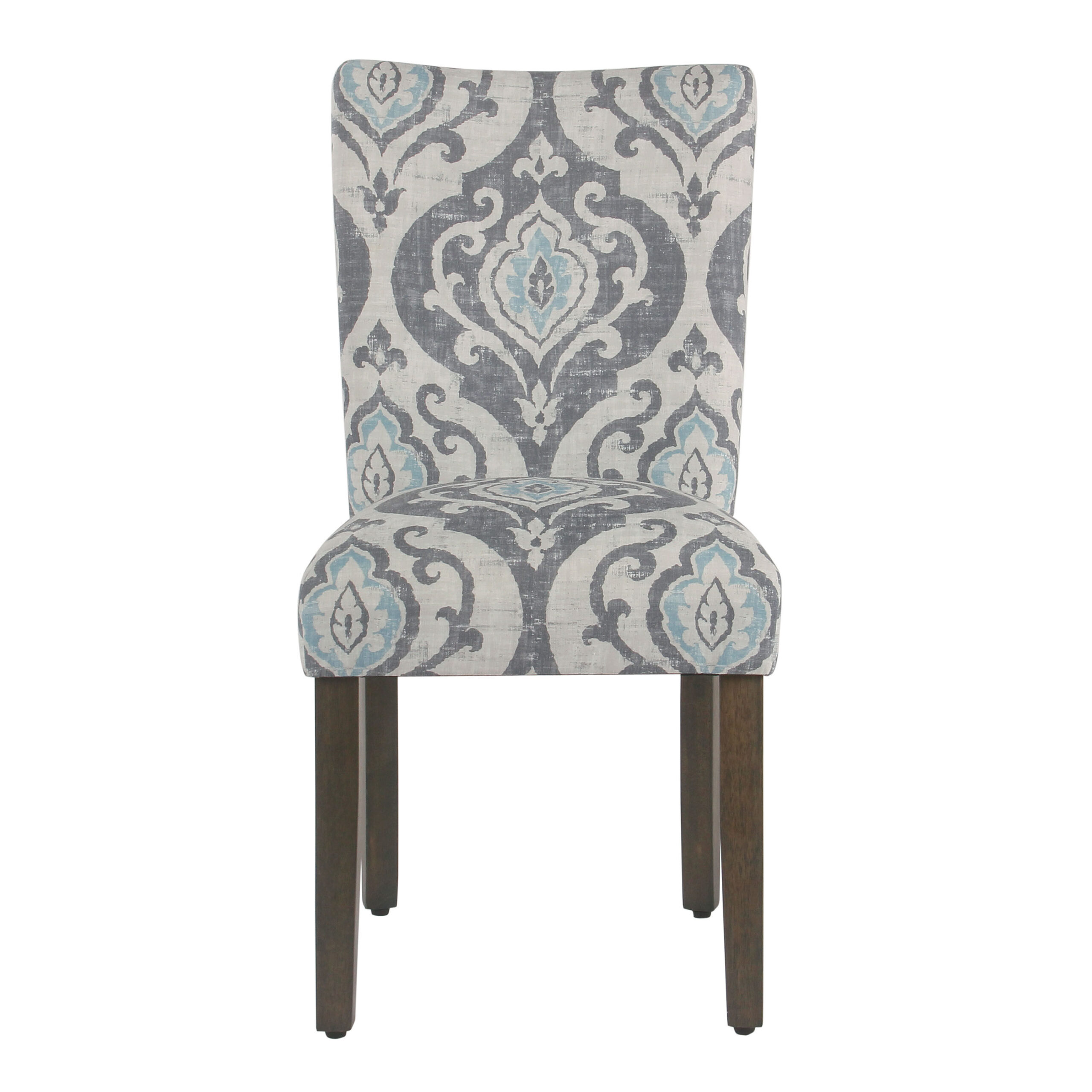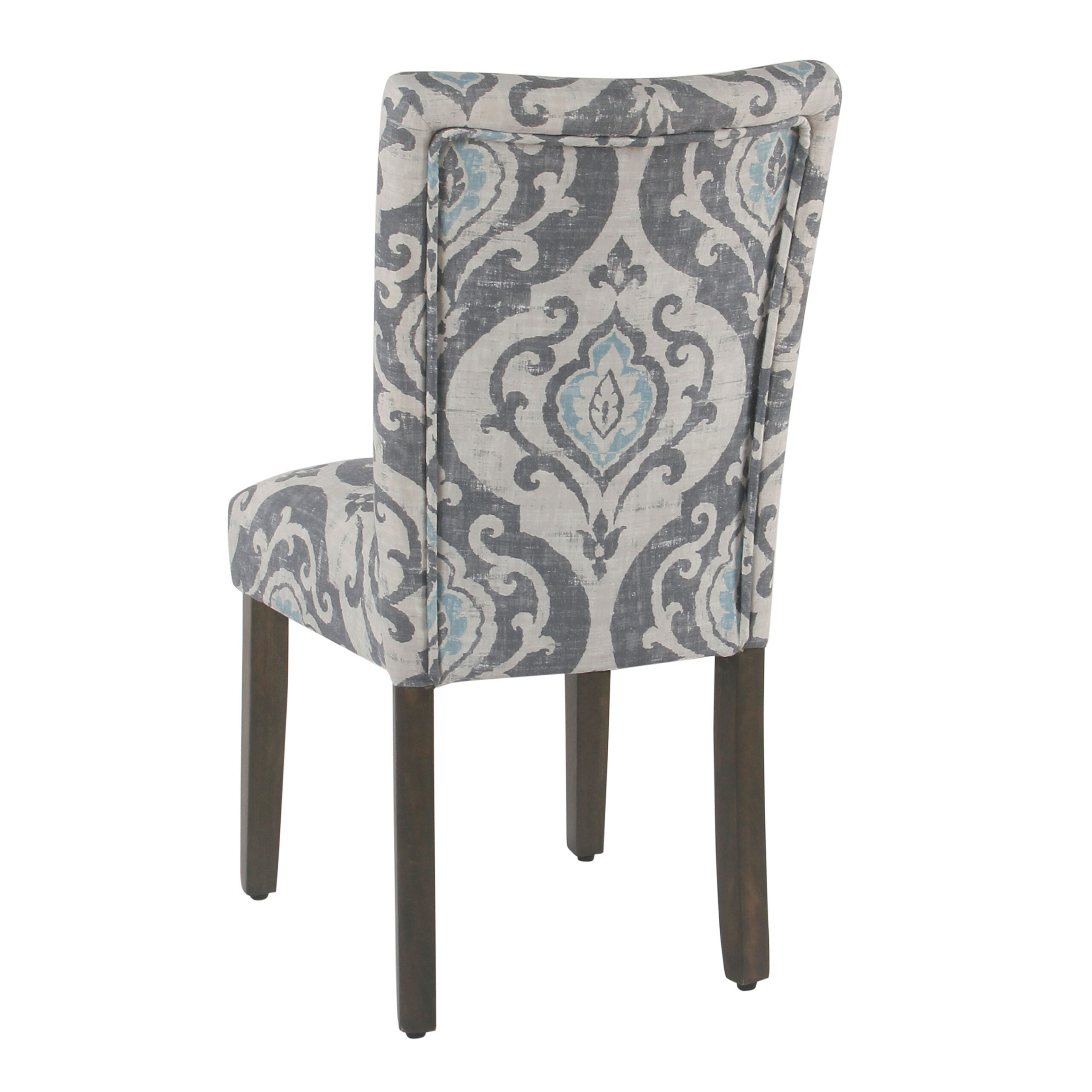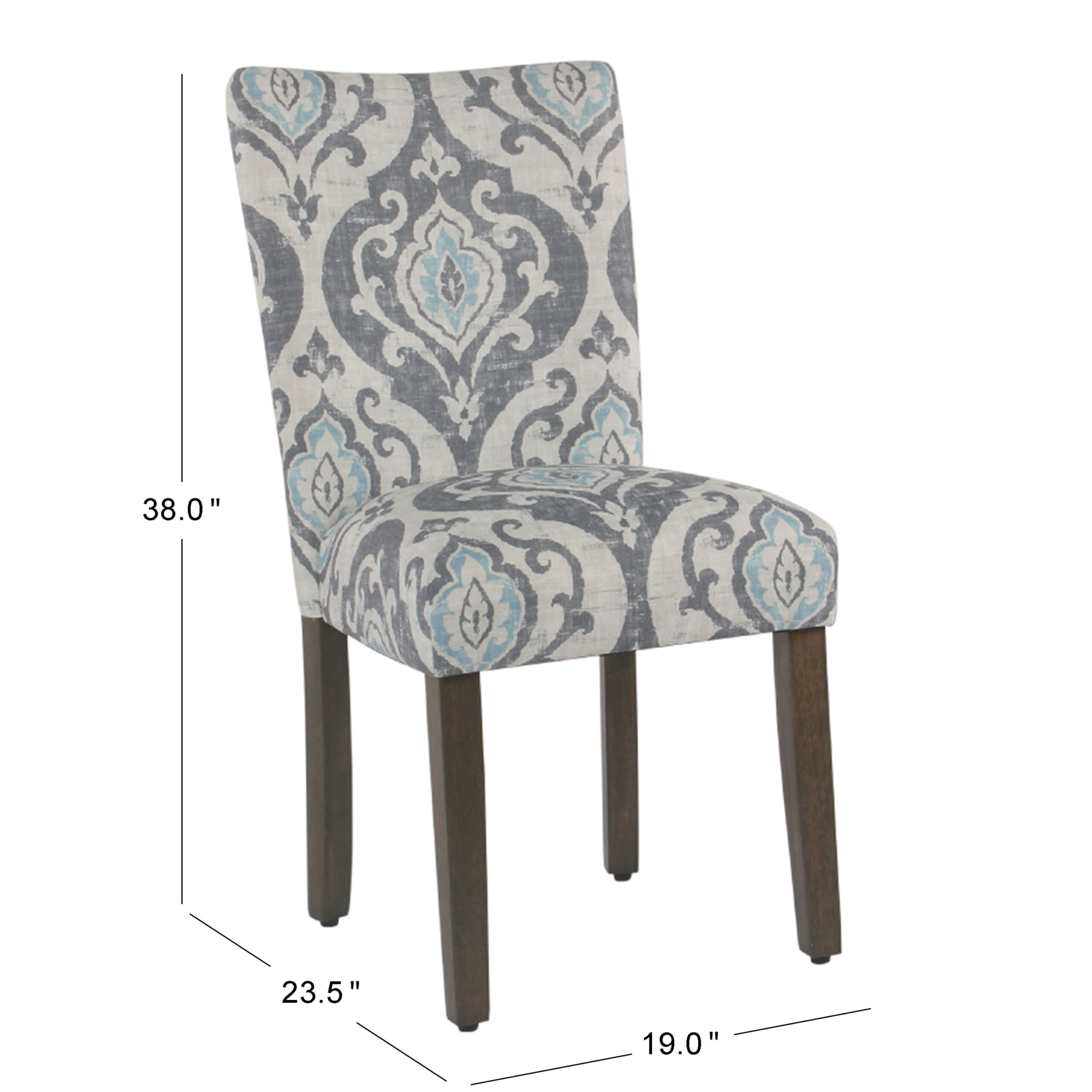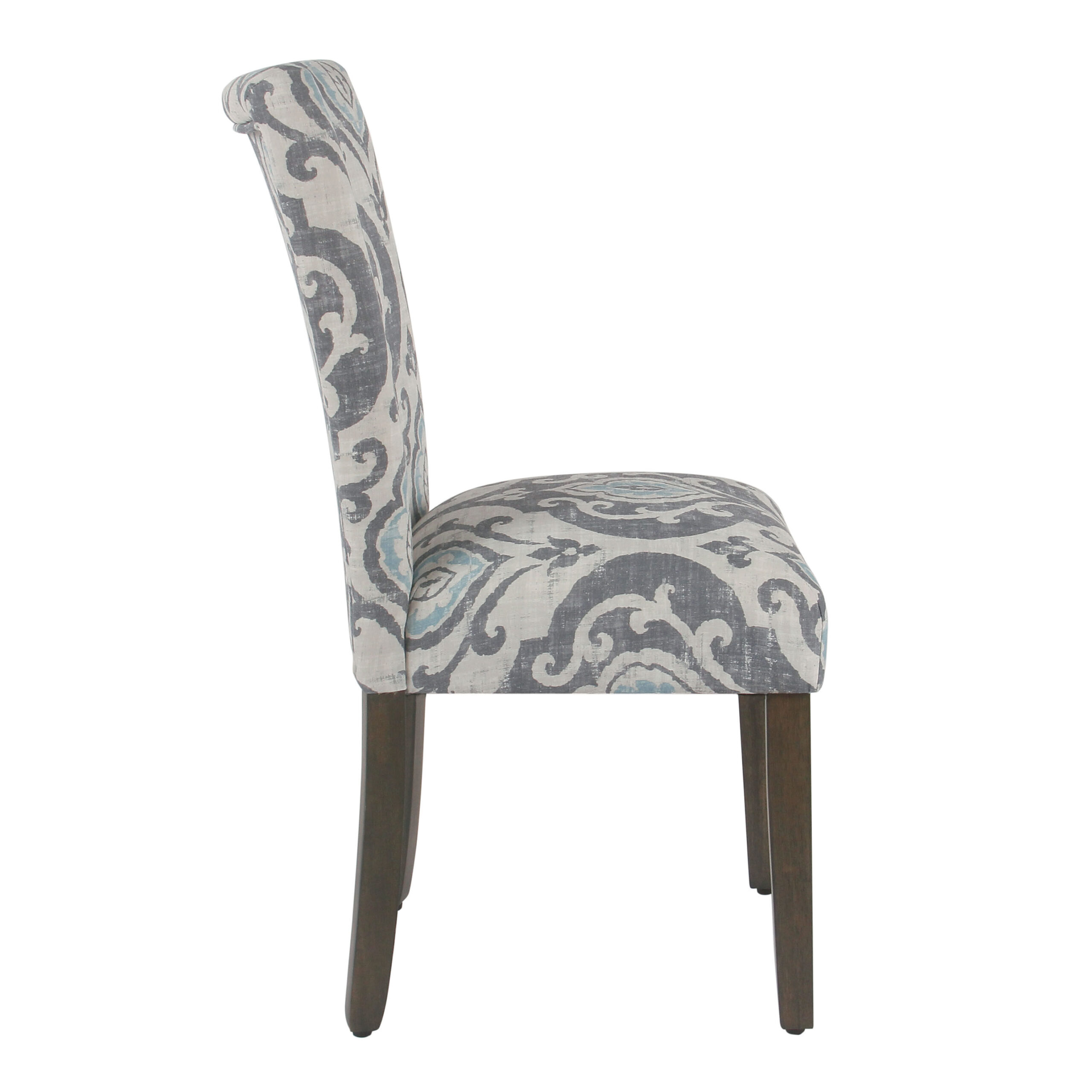 - Made of wood with graywash finish and polyester upholstery