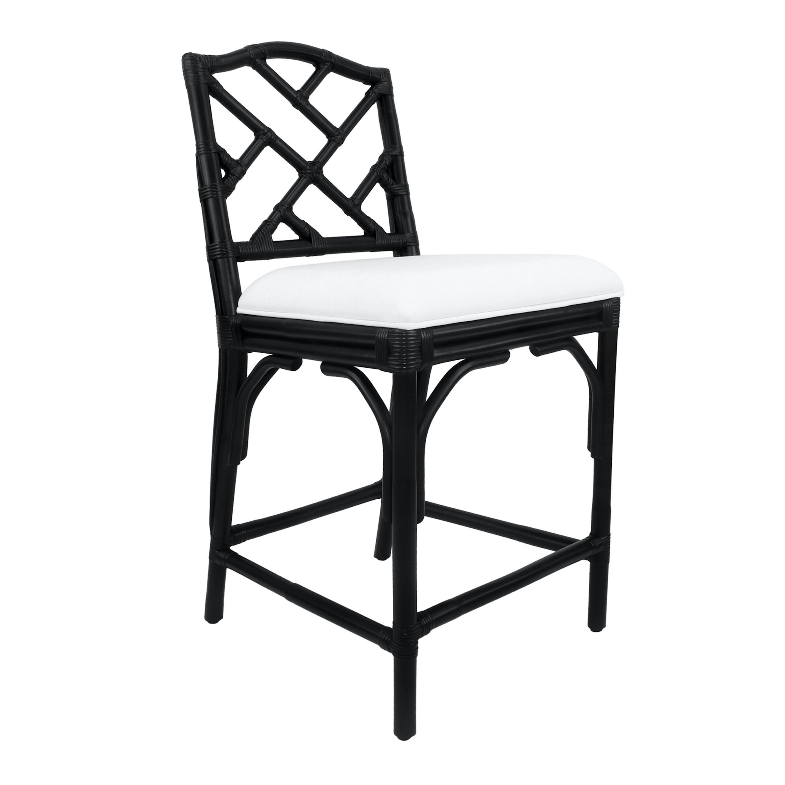 Albi Black Rattan Herringbone Back Upholstered Counter Stool
