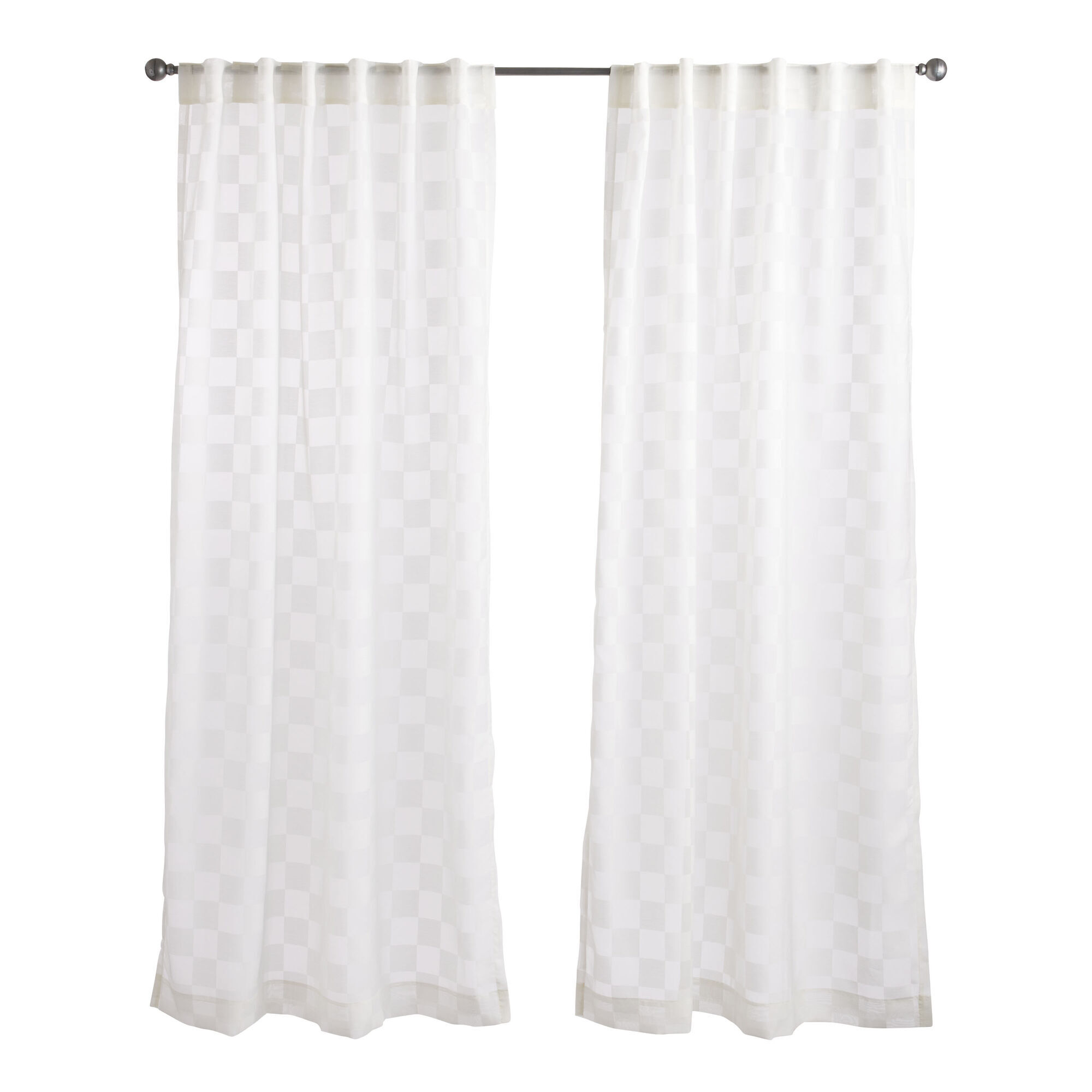 Ivory Checkered Burnout Sheer Sleeve Top Curtains Set of 2