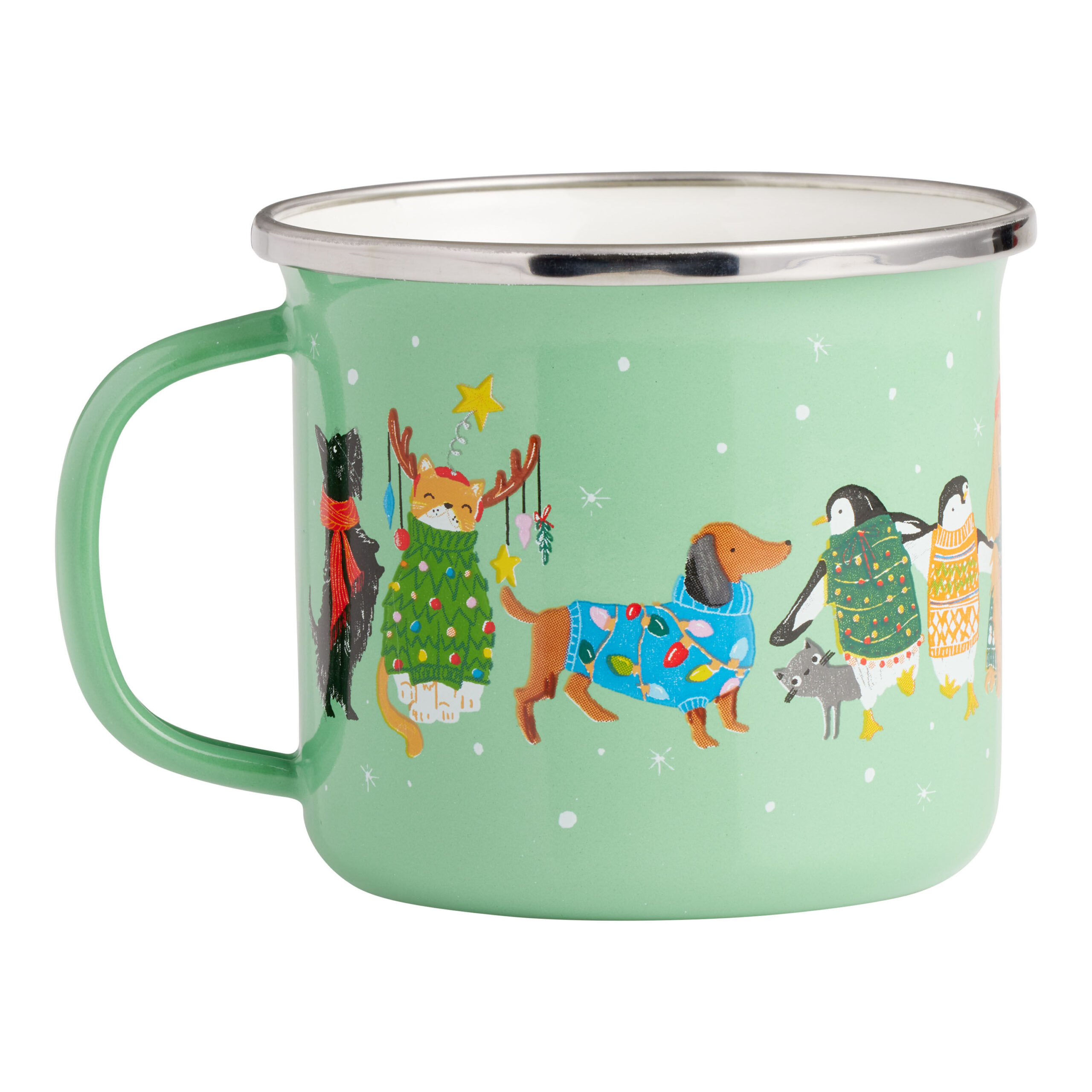 Mint Green Ugly Sweater Animals Holiday Enameled Steel Mug