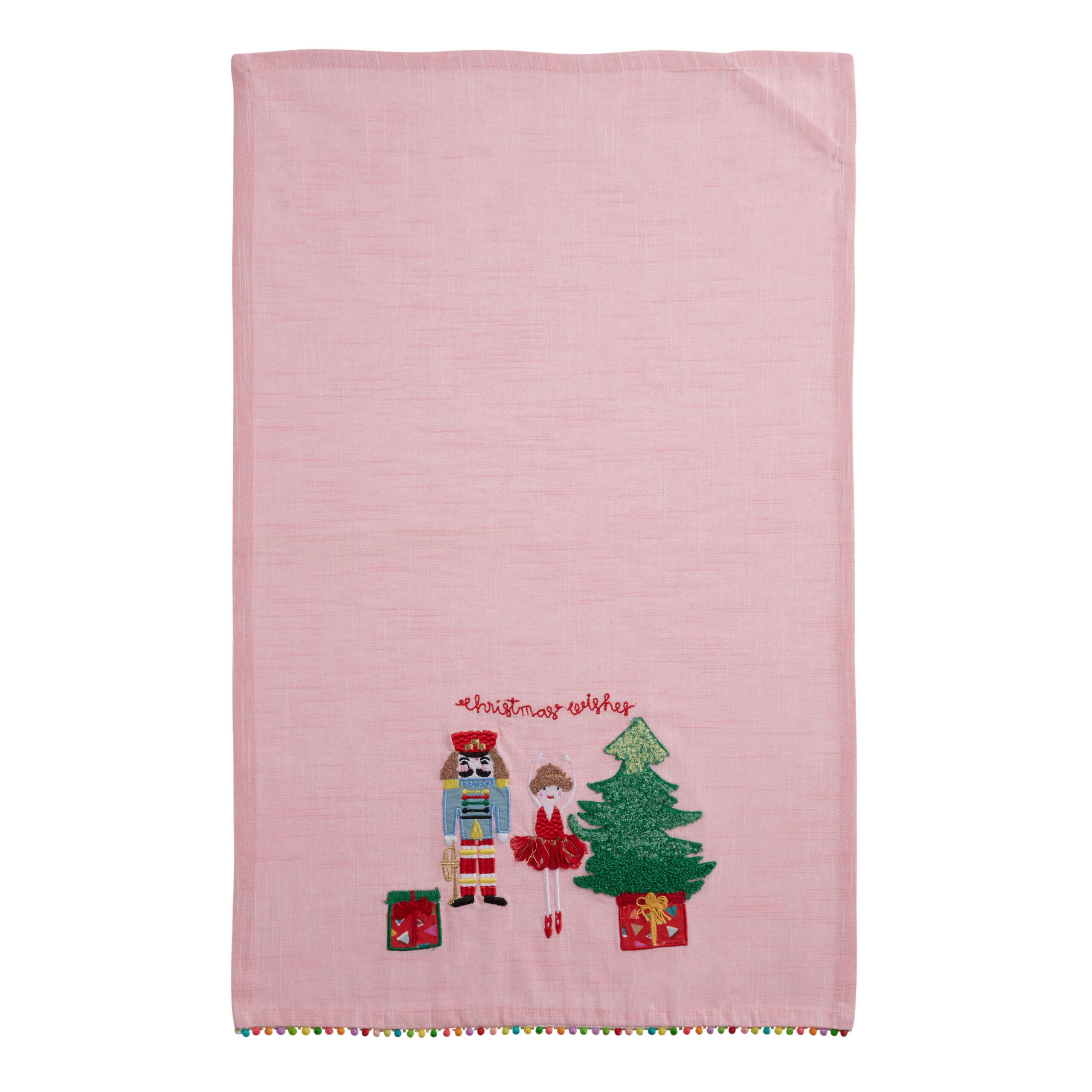 Pink Embroidered Nutcracker Ballerina Kitchen Towel