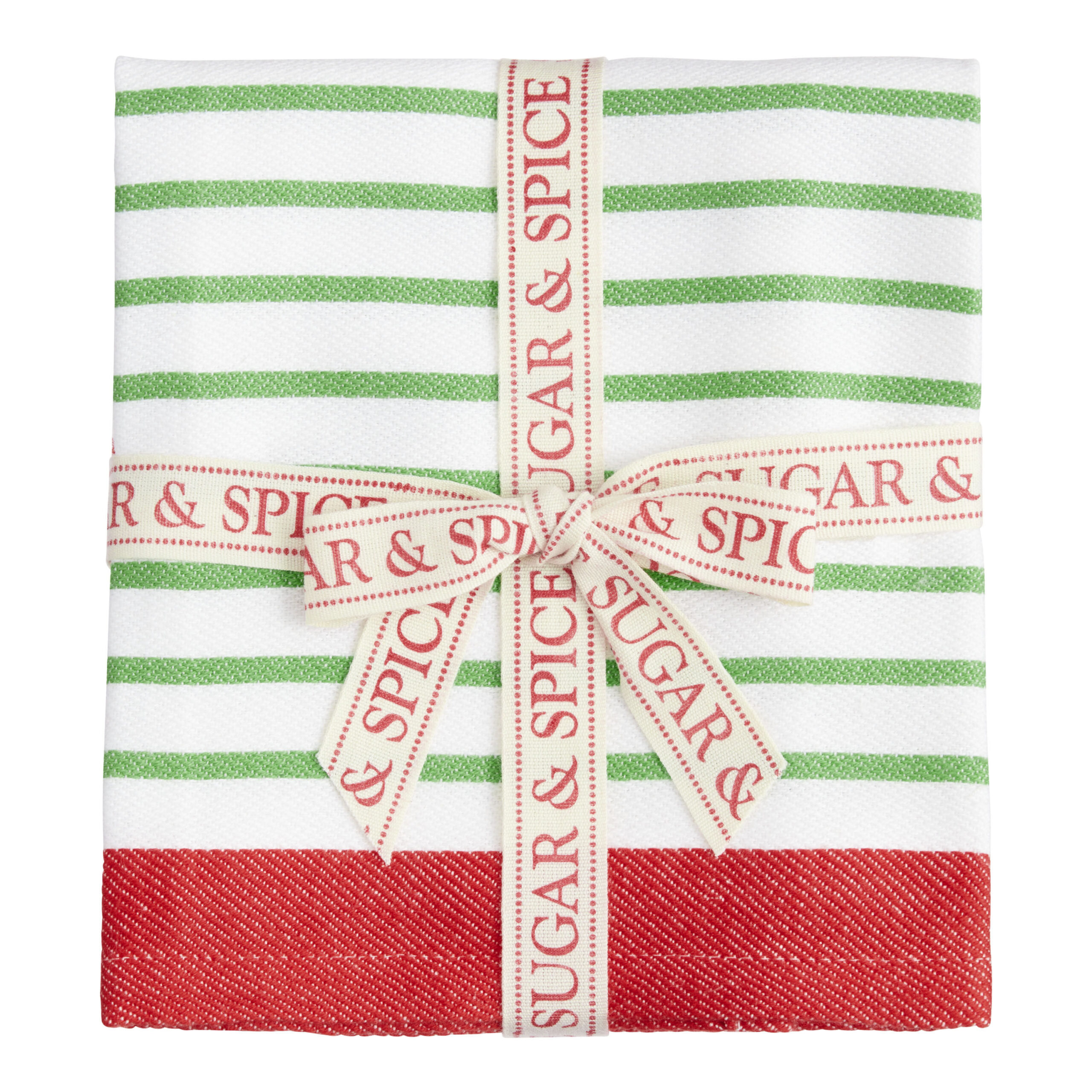 Red and Green Woven Stripe Kitchen Towels 2 Pack