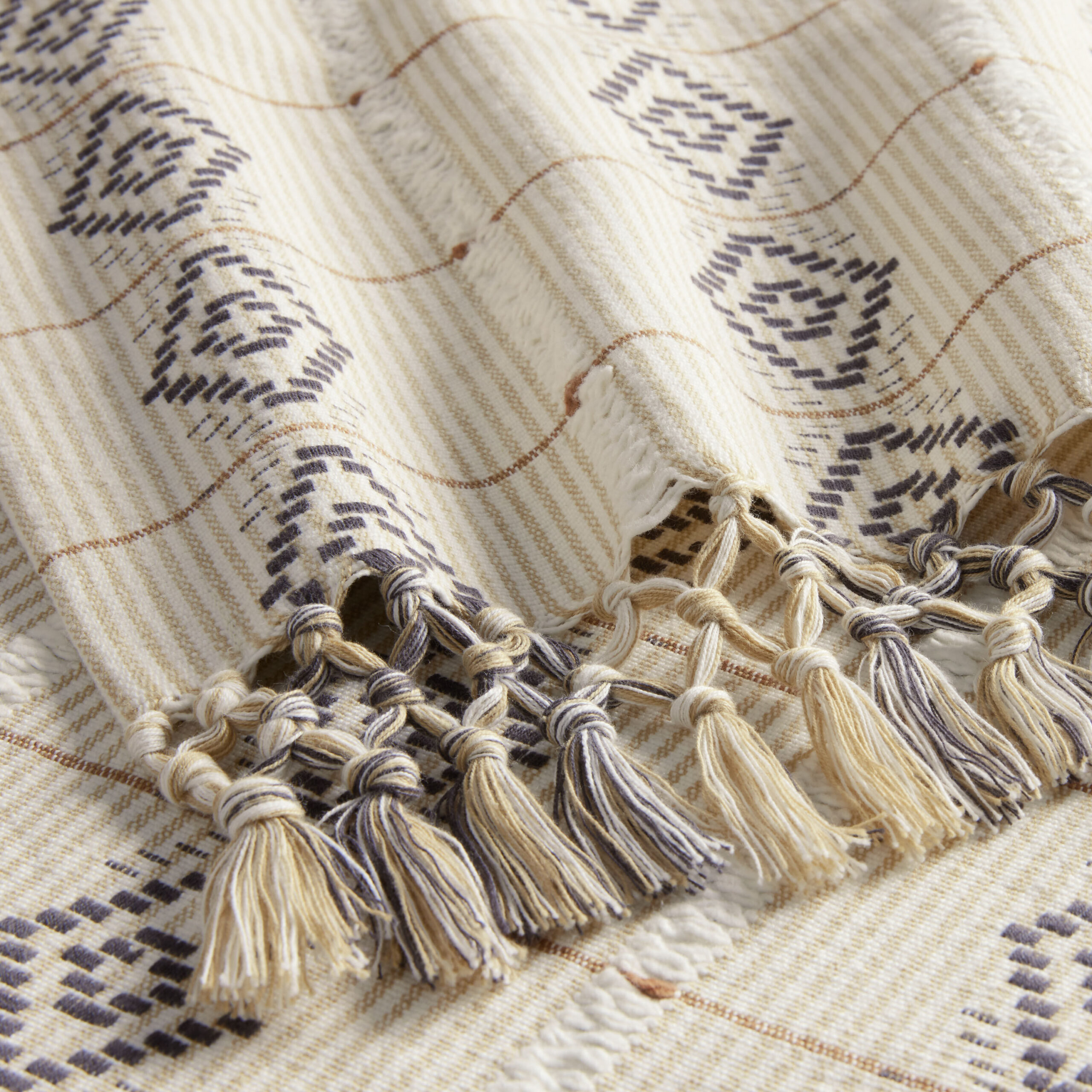 Tan And Black Diamond Fringe Table Runner