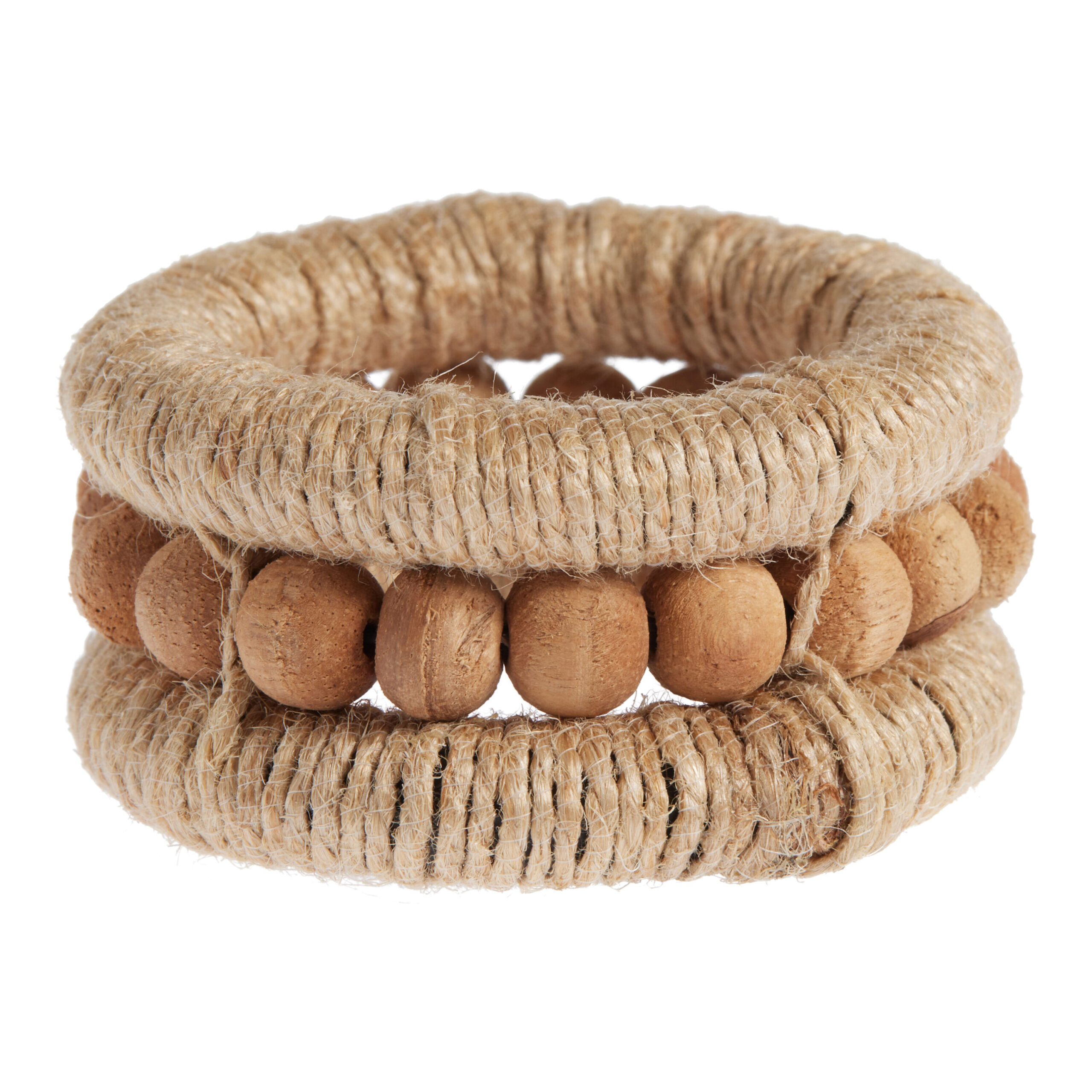 Wood Beaded Jute Napkin Ring Set of 2